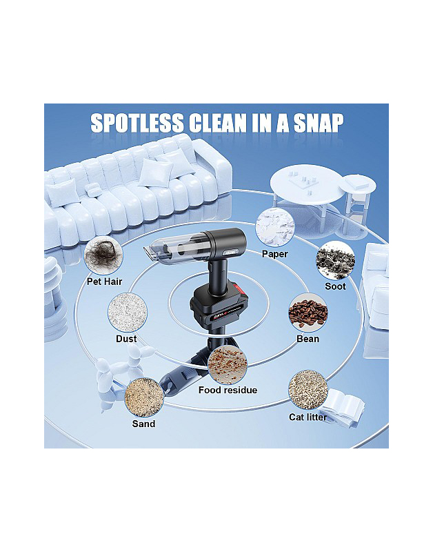 Aspirateur portable MDHL -MD-16 – avec batterie- pour voiture – pc- coin difficiles Fonctionnement sans fil avec batterie rechargeable Aspiration puissante, fonction de soufflage et conception portableFonctionnement silencieuxFiltre HEPA lavable qui capture les particules fines et les allergènesComprend plusieurs buses pour nettoyer différentes surfaces et atteindre les coins étroits